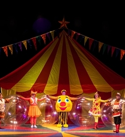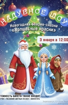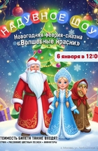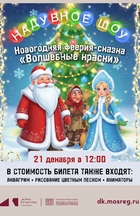 Только здесь Вы сможете увидеть чудесный надувной мир разноцветных веселых клоунов: самые огромные мячи, гигантские обручи, ростовые куклы, зонтики, кубики, прозрачные шары, внутрь которых волшебным образом попадают герои сказки. В этом спектакле используется эксклюзивный надувной реквизит, даже новогодняя ёлка – и та надувная.
